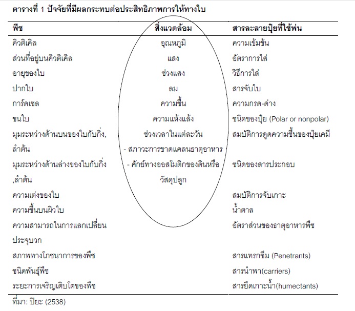 และเกิดความเข้าใจผิดเสียโอกาสแต่อัตราที่สูงเกินไปก็จะเกิดผลเสียหายแก่พืชอัตราการใช้ปุ๋ยพ่นทางใบแต่ละสูตรขึ้นอยู่กับ