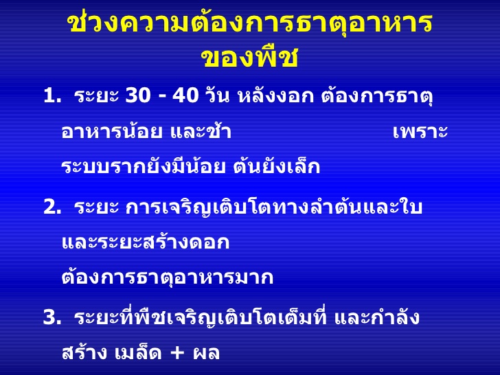 6. ปุ๋ยน้ำควรเป็นปุ๋ยที่ผลิตจากแม่ปุ๋ยฟอสฟอรัส ในรูปของสารประกอบหรือสารละลายโพลิฟอสเฟต