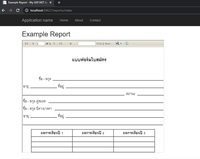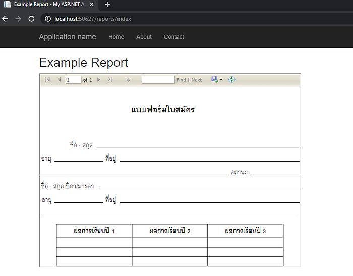 - วิธีการเขียน Report แบบมีเงื่อนไขการซ่อน เมื่อมีเงื่อนไข เช่นมีแบบฟอร์มใบสมัครที่ให้กรอกชื่อข้อมูลส่วนตัว ดังนี้